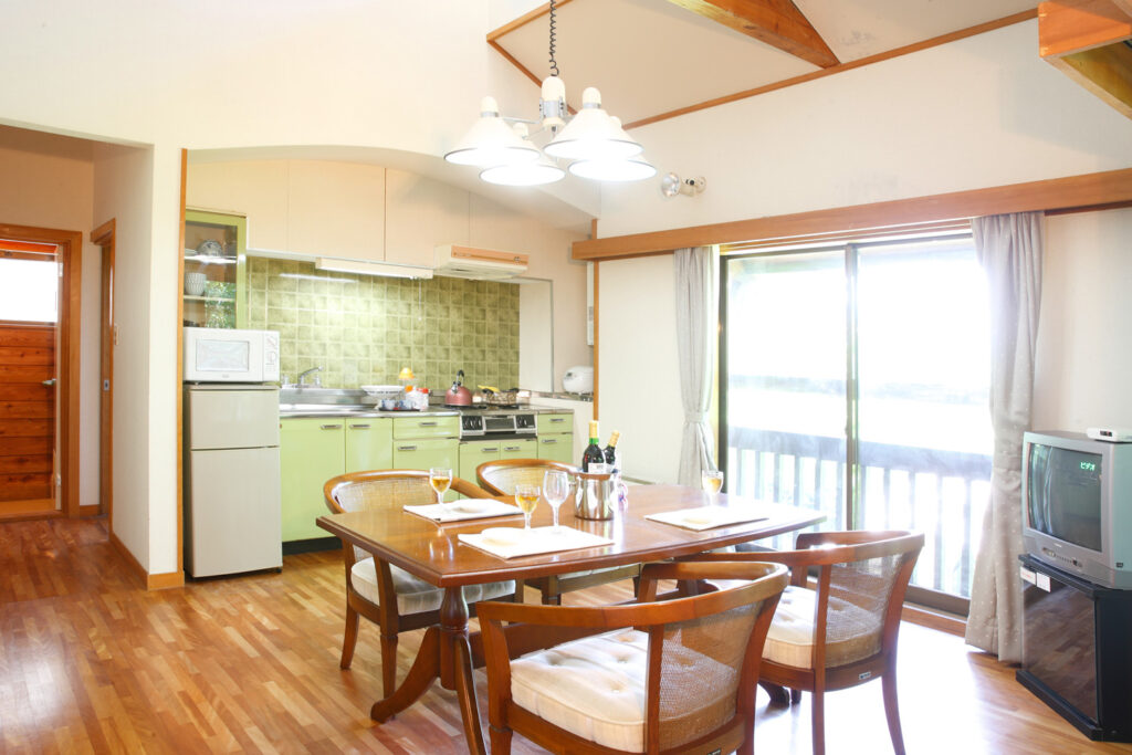 カップル・ご夫婦からファミリー・グループ、最大5名様までお使い頂ける広いお部屋です。すべての客室に自炊が出来るキッチンが付いています。