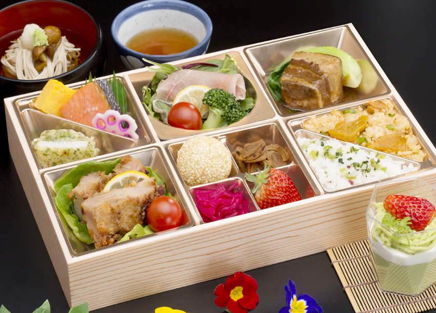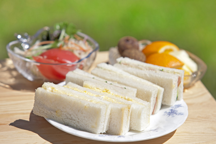 【和食】おにぎり、卵焼き、煮物、漬物、フルーツ    【洋食】サンドウィッチ、サラダ、フルーツ